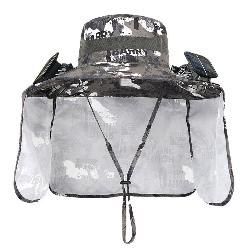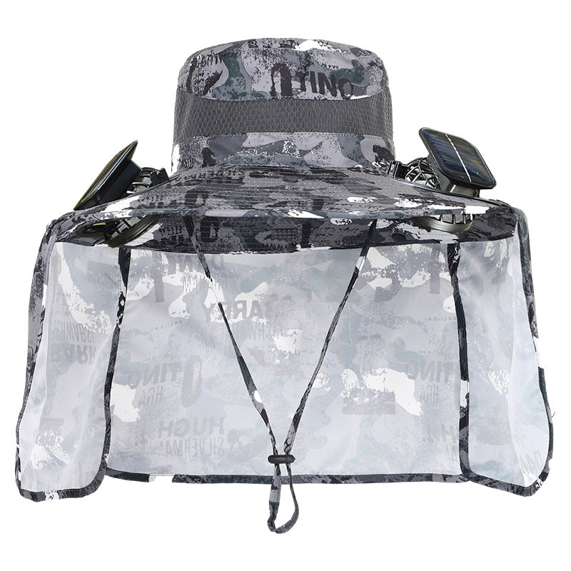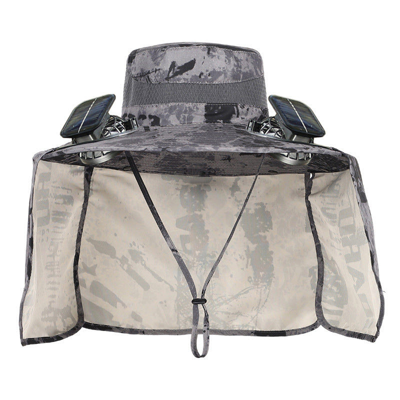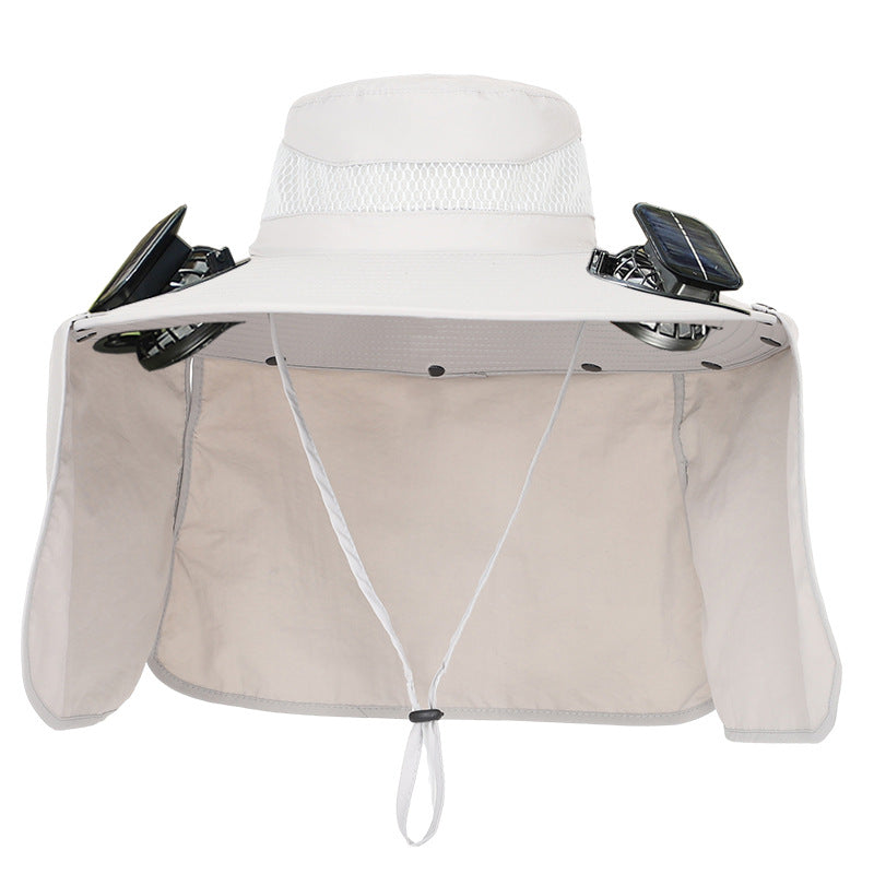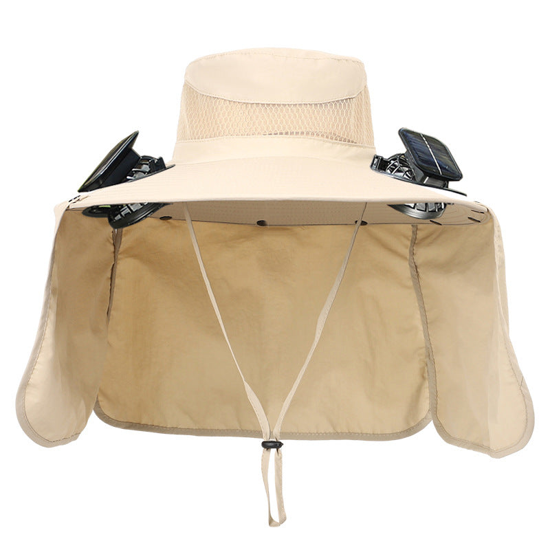 Combines UV protection, breathability, waterproofing, wind resistance, shading, and a built-in fan